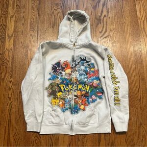 Rare Vintage Pokemon Full Zip Hoodie 2008 Anime Kanto Sz Small White Pikachu