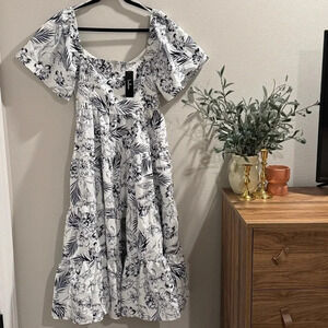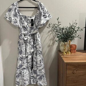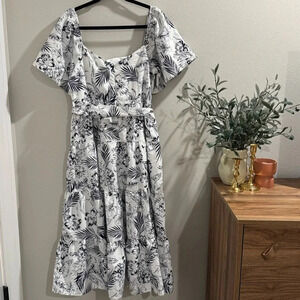 NWT Lulu's Tropical Sunshine White Floral Print Tiered Midi Dress Size Large
