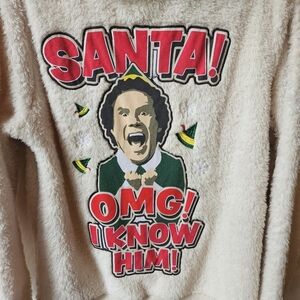 Cozy cream hoodie with a bold Elf "Santa! OMG I know him!" graphic. Own a piece of the most adorable Christmas movie of all time, and walk around with Will Farrell on you all day ❤️