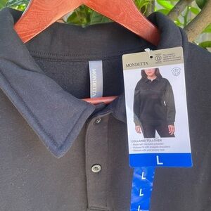 Mondetta Ladies' Collared Fleece Pullover Top, Black Medium Large