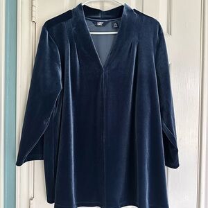 Lands’ End Blue Velvet V Neck Blouse Size 1X Velour Holiday Stretchy