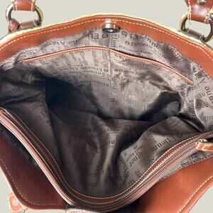 This is a vintage pre-owned Etienne Aigner branded shoulder/tote bag. It is in good pre owned condition with normal wear noted on the clasp (SEE PHOTOS) and a light scratch on the base of the bag (SEE PHOTOS).