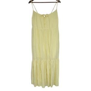 Old Navy Womens M Yellow Tiered Maxi Pockets Sundress Embroidered Festival BOHO