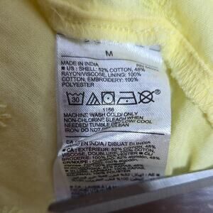 The Old Navy Women's Tiered Maxi Swing Sundress in yellow, size M, is a stylish and comfortable choice for travel or casual occasions. The sleeveless design, spaghetti straps. square neckline, and pullover closure make it easy to wear. The dress features a floral pattern with embroidered accents, giving it a bohemian and peasant-inspired look. Made from a blend of cotton and rayon, this long dress is machine washable and perfect for the summer, fall, and spring seasons. With its vibrant yellow color and relaxed fit, this dress from Old Navy is a must-have for any woman's wardrobe.