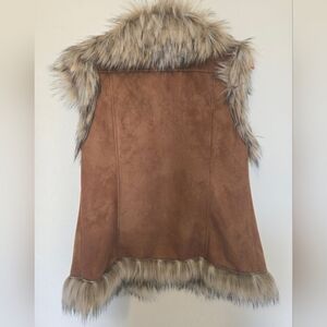 TASHA POLIZZI Brown Suede Vest with Faux Fur Collar Size Med.