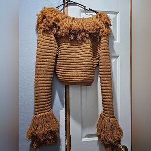 Features long sleeves and fringe accents. Perfect for stylish outings.