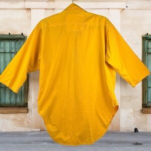 Vibrant yellow button-up shirt with a relaxed fit. Features a classic collar and long sleeves.