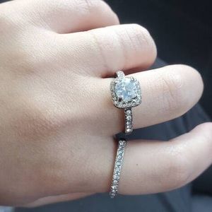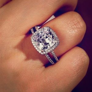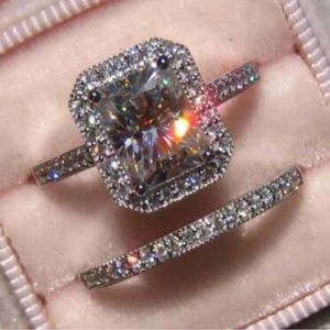 #New #3.2CT #Cushion #Cut #Halo #White #Sapphire #14k #White #Gold #Plated #Bridal #Ring #Set