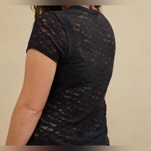 Aerie Black Vintage Lace Short Sleeve Top Sz XS