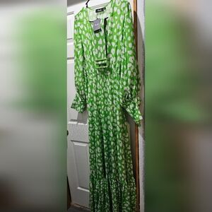 Stand out with this vibrant green dress by Hanifa. Features bold animal print and elegant long sleeves. Perfect for making a statement.