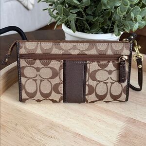 Coach Signature strip Zippy Wallet/Wristlet