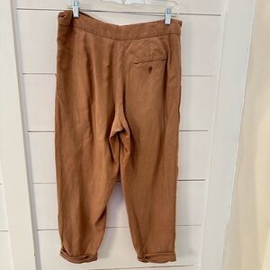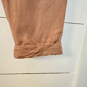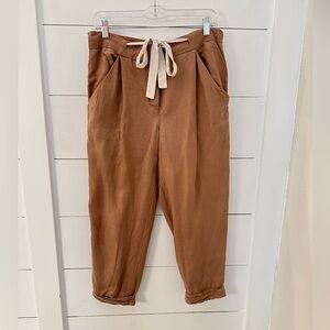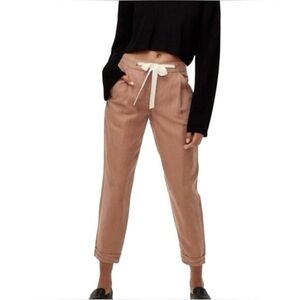 ARITZIA WILFRED 6 Earthy pink linen bland tie waist hidden buttonfly crop jogger