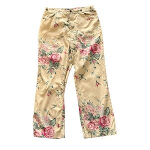 Hunt Club Cream Beige and Pink Floral Cotton Linen Wide Leg Pants size 16