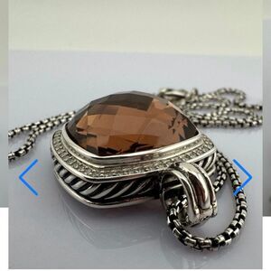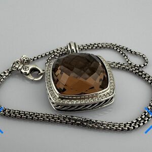 This 20 x 20 faceted cushion cut gem is completely surrounded by pave diamonds. Hallmarked DY 925. Professionally cleaned and polished. EUC.