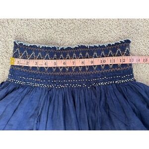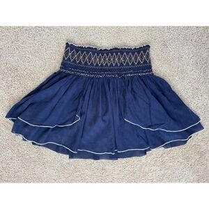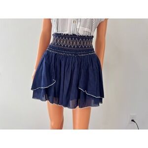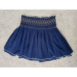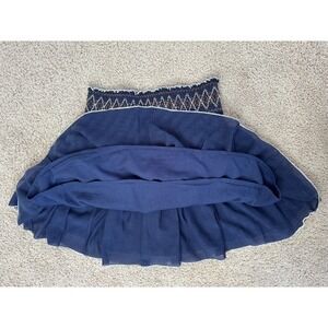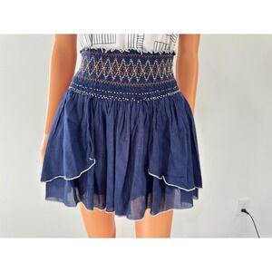 Free People Navy Blue Smocked Embroidered Tiered Ruffle Mini Skirt Boho Womens