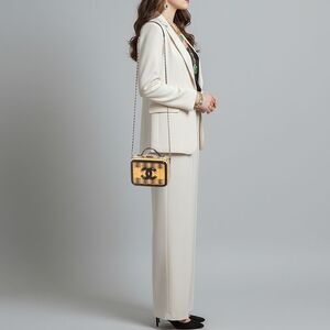 Blending structured form with mixed materials this Chanel Filigree vanity case pairs rattan construction with patent leather accents. The zip around closure reveals a compact interior suited for small essentials. A chain shoulder strap allows crossbody or shoulder wear while the boxy silhouette makes it a distinctive option for both daytime outings and evening occasions.
