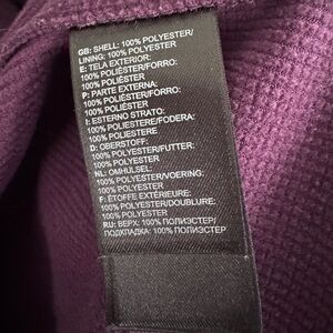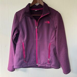 Beautiful purple softshell jacket from The North Face in excellent used condition. No stains, holes, or flaws. Warm fleece-backed interior, contrast pink zippers, and a flattering paneled fit. A great everyday layer for cooler weather.