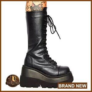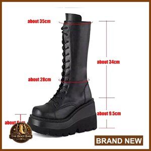 [ORIGINAL_TITLE: Chunky Platform Combat Boots Mid Calf Side Zip Punk Winter Booties Wedge Heel]