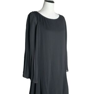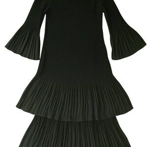 Adrienne Vittadini Black Tiered Midi Dress Pleated Bell Sleeves Size 10 Ribbed