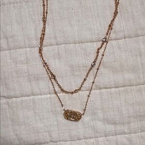 Chic rose gold necklace with delicate chain. Features a textured pendant. Ideal for layering or solo wear.