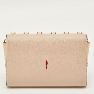 The Paloma clutch by Christian Louboutin is dressed in beige leather and patent leather detailed with a rich mix of studs crystals and signature motifs across the front. Finished with a delicate chain strap it moves naturally between hand held evenings and shoulder worn nights.