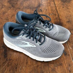 Stylish Brooks running shoes in gray and blue. Perfect for daily runs. Lightly worn, great condition.