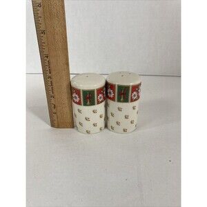 Charlton Hall Kobe Christmas Poinsettia 3" Salt & Pepper Shaker Set Vtg Japan