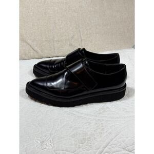 Vince Women 7.5 Arden Black Patent Chunky Lug Sole Goth Platform Shoe Leather