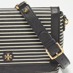 Tory Burch Black/white Stripe Leather Kerrington Crossbody Bag