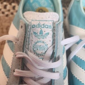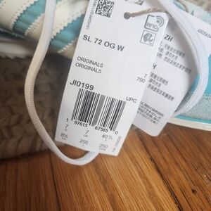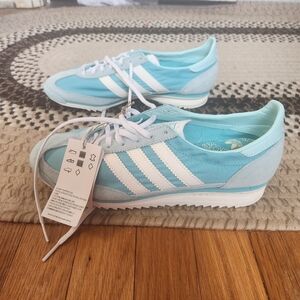 Chic Adidas SL 72 OG sneakers in teal. Features classic white stripes. Ideal for everyday wear.