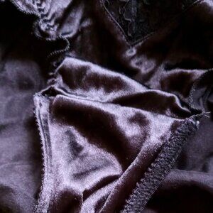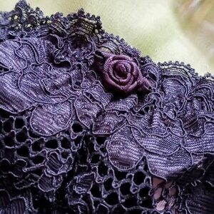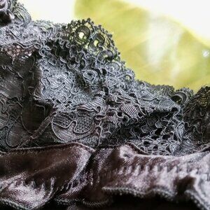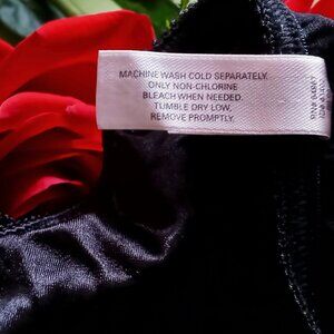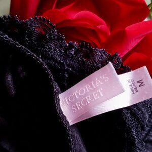 ❤️❤️This sexy classic vintage pair of panties has sheer floral lace trim & satin with front black rosette. Satin lace nylon spandex materials. This Panty is in great condition! This original VS bikini panty is a must-have for any collector or lingerie enthusiast. I purchased, washed but never wore. Found in back of my panty drawer! (Smoke free, pet-friendly home)❤️❤️ -Tags: layer under a dress, honey moon, wedding anniversary, gift, romantic evening💋💋blends soft femininity with a flirty charming demeanor. (There's a laundry detergent stain on inside gusset) For some reason the panties look dark purple in some pics from my camera or lighting or monitor screen.