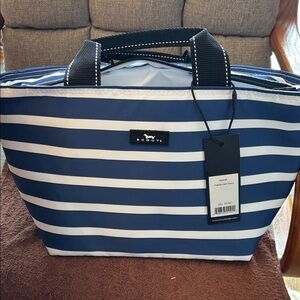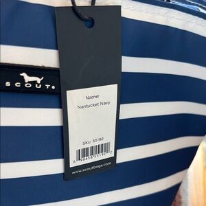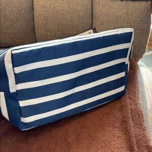 Navy and white stripes create a classic look. Durable and stylish for daily use. Ideal for carrying essentials. Nantucket Navy color, great for the beach or work at lunch bag