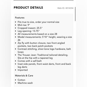 Size 26 Polo Ralph Lauren high rise trouser tapered jeans. 100% cotton, like new condition. No belt. Inseam 25.5”