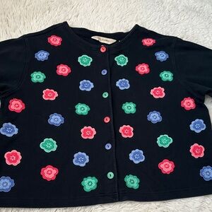 Women’s vintage Bechamel cardigan with floral colorful embroidery- colorful buttons short sleeve and unique SZ M
