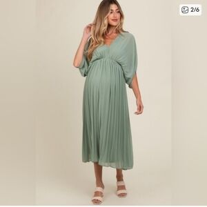 This elegant green maternity dress offers comfort and style for any occasion. The soft fabric and flowing design ensure a flattering fit throughout your pregnancy.