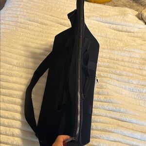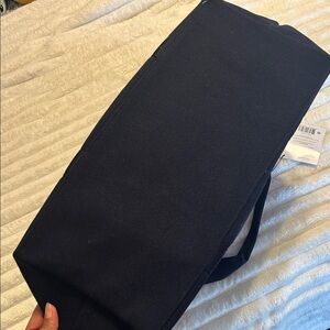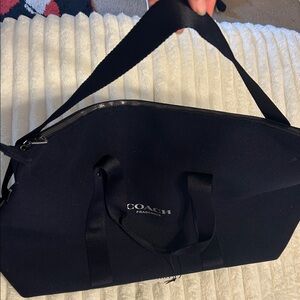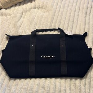 Sleek navy Coach fragrance duffel. Features bold silver logo. Perfect for travel. New with tags