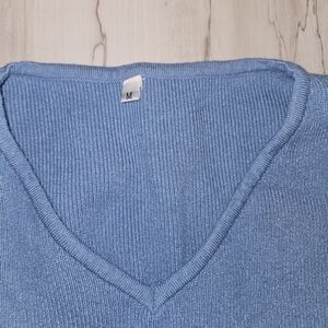 Amazon Light Blue Women's Cozy Ribbed Knit 2-Piece Loungewear Set Medium