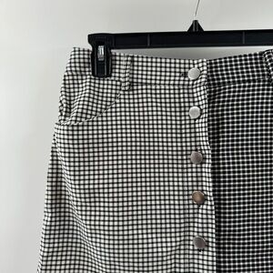 Forever 21 Asymmetrical Plaid Skirt – Black & White, Silver Buttons, Size Medium