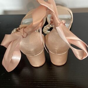 Women’s Champagne open toe 2 1/2” heel, silk, pearls stones SZ10/41 NWOT