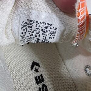 Converse Chuck Taylor All Star low top sneakers bring a vibrant, retro energy to any outfit with a bold rainbow tie-dye canvas upper. These classic lace-up shoes feature the iconic rubber toe cap, textured toe bumper, and All Star branding on the tongue and heel. The vulcanized rubber outsole provides durable traction, while the metal eyelets and white laces complete the timeless silhouette. Note that there is some light writing on the toe caps as shown in the photos.