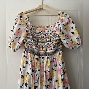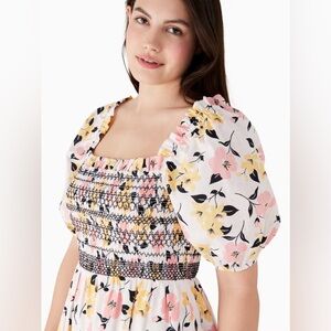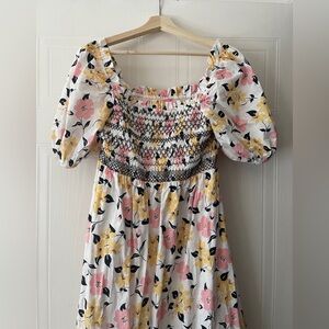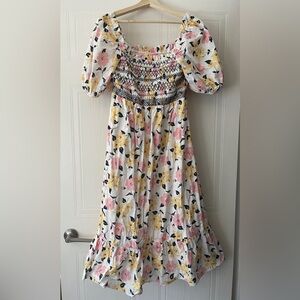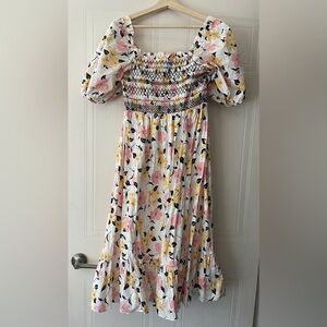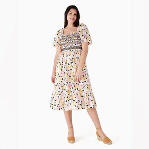 Kate Spade New York Lily Blooms Smocked Multi Floral Pastel Midi Dress