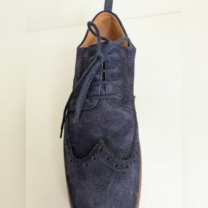 Clarks Mens Chantry Wing Navy Blue Suede Leather Wingtip Oxfords Size 8.5 EUC
