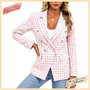 Tweed Plaid Blazer Jacket Double-Breasted Slim Petite Casual Work Pocket