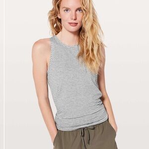 Chic striped tank top by lululemon athletica. Soft gray and white pattern. Ideal for casual wear. Size Small