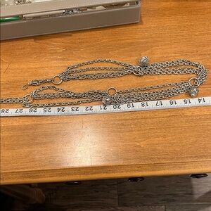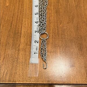 Stylish silver chain belt with intricate design. Perfect for adding flair to any outfit.