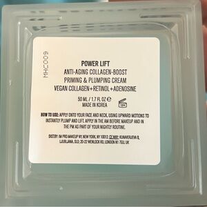 The Power Lift Plumping Cream is an anti-aging cream that also functions as a primer. New in box, box still sealed.