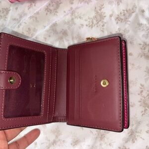 Charming Coach wallet with cherry design. Vibrant pink color. Ideal for stylish organization.