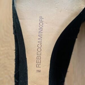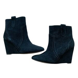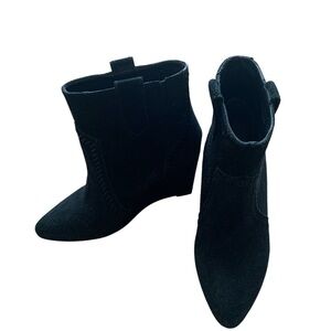 Minkoff Bianca Wedge Ankle Bootie Black Suede Size 7