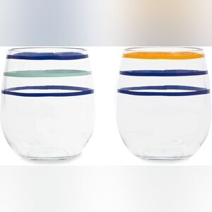 NWT Kate Spade Citrus Twist Strip Stemless Wine Glass Set Multicolored