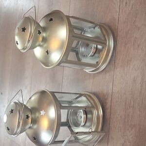 Stylish gold lanterns with star cutouts. Ideal for cozy lighting.